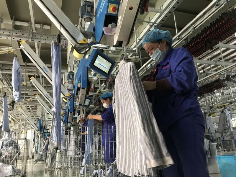在公司新建的3500平方米廠房內(nèi),5條“洗滌龍”(隧道式洗衣機(jī))和12臺隔離式洗衣機(jī)協(xié)同作業(yè),并集中辟出專門隔離區(qū)域進(jìn)行感染性織物處置,有效防止醫(yī)療感染性織物因洗滌和運(yùn)輸產(chǎn)生的二次污染和交叉感染風(fēng)險(xiǎn)。
