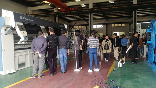 今日,辦事處人員以及其的客戶在下午連續(xù)到廠。各展位前面人員絡(luò)繹不絕,先查看展示面板介紹,而后與工程師進(jìn)行深入交流。其中,隔離式洗脫機(jī)、節(jié)能烘干機(jī)以及傾斜式洗脫機(jī)的展位深受歡迎,工程師和銷售們也陪同在側(cè)進(jìn)行隨時(shí)解答。