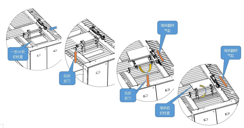 2,縱折同時(shí)完成對(duì)枕套的堆碼,整理打包的操作人員1人即可完成,可節(jié)省2-3個(gè)人的人工;