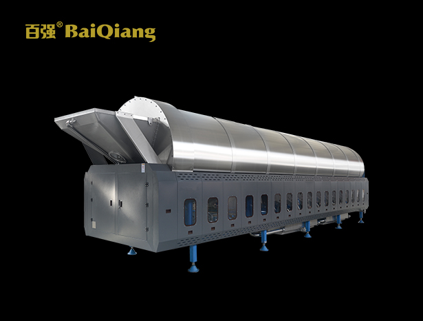 百強(qiáng)隧道式洗衣機(jī)系列(國內(nèi)稱之為“洗滌龍”),與傳統(tǒng)洗衣機(jī)相比,該設(shè)備采用了 水循環(huán)和過濾技術(shù),極大降低了水消耗和蒸汽消耗;可節(jié)水 70%、節(jié)電 60% 以上,節(jié)省人力 80%。傳送和洗滌倉采用較佳配比設(shè)計(jì),造就其強(qiáng)大的洗滌機(jī)械作用力和洗 凈度。不銹鋼滾筒及洗衣龍連接管線均按照德國的質(zhì)量標(biāo)準(zhǔn)和衛(wèi)生標(biāo)準(zhǔn)設(shè)計(jì)制造, 觸控式面板操作智能簡便,洗衣龍內(nèi)置標(biāo)準(zhǔn)洗滌程序,可以自由編制洗滌程序。雙馬 達(dá)驅(qū)動(dòng)裝置,保證了龍運(yùn)作的穩(wěn)定性。百強(qiáng)洗滌龍技術(shù)以穩(wěn)定、實(shí)用、簡潔、維護(hù)成 本低為基礎(chǔ),以適應(yīng)中國市場(chǎng)為出發(fā)點(diǎn),用優(yōu)質(zhì)的產(chǎn)品,良好的服務(wù)去營造品牌優(yōu)勢(shì)。